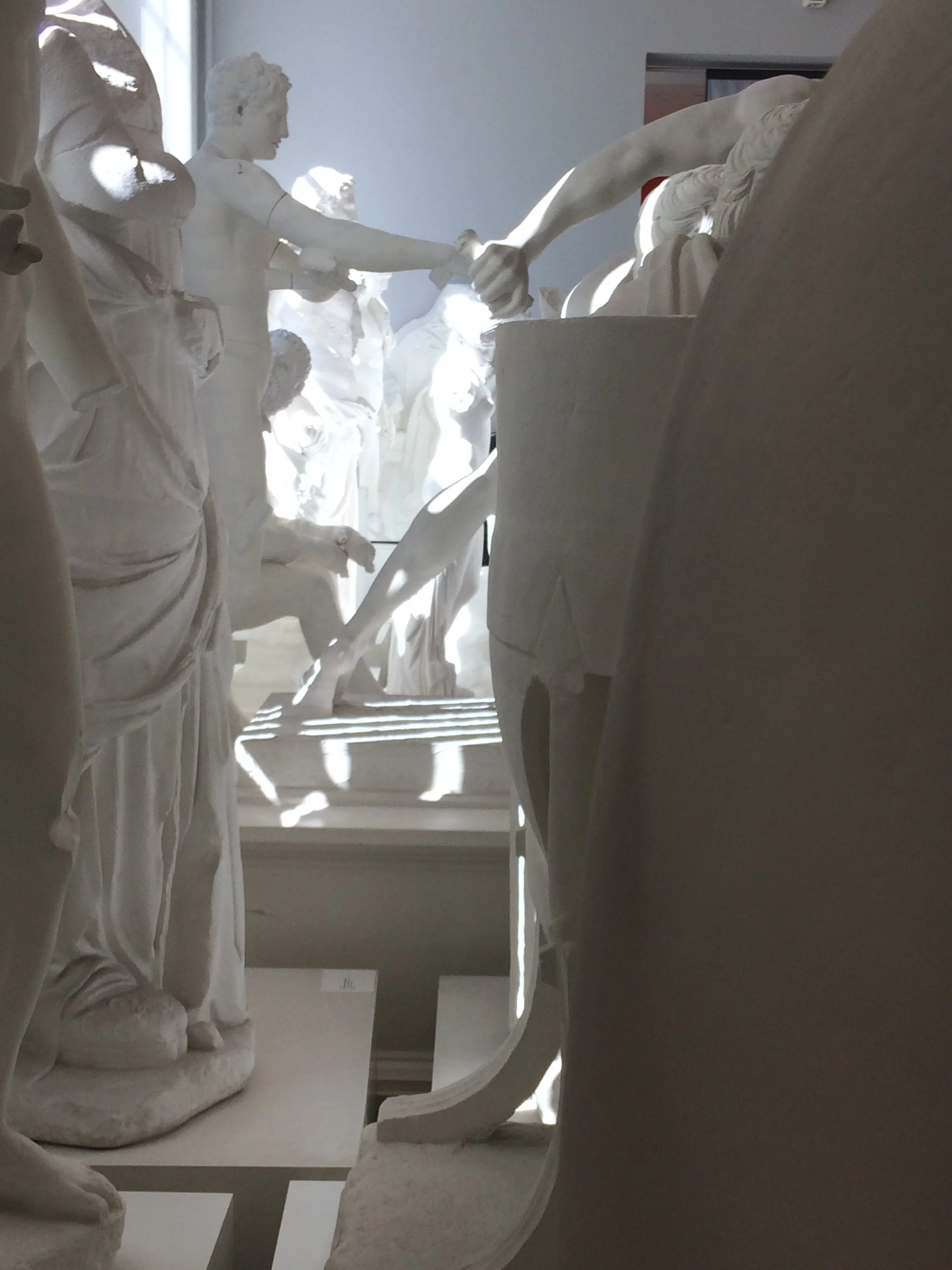 The University is home to a spectacular group of collections, currently largely housed in their departments, and open to the public on Sundays. My tour comprised the ethnographic collections, which include a Tahitian mourning costume brought back by the Forster's from the 2nd voyage led to the Pacific by Captain Cook, an extraordinary shaman's outfit from northern Russia, and John Russell's beautiful portrait of the Inuit Mikak and her son. The cast collection of antique sculpturesincludes all the usual iconic pieces - the Dying Gaul, the Winged Victory, the Apollo Belvedere, Discobolus - gathered in side-lit rooms with richly coloured walls, so that they look as if they have come together for a meeting and might step forward to greet you. The old botanical gardens are a wonderful spot for a sunny Saturday, complete with Alpinum and glasshouses.