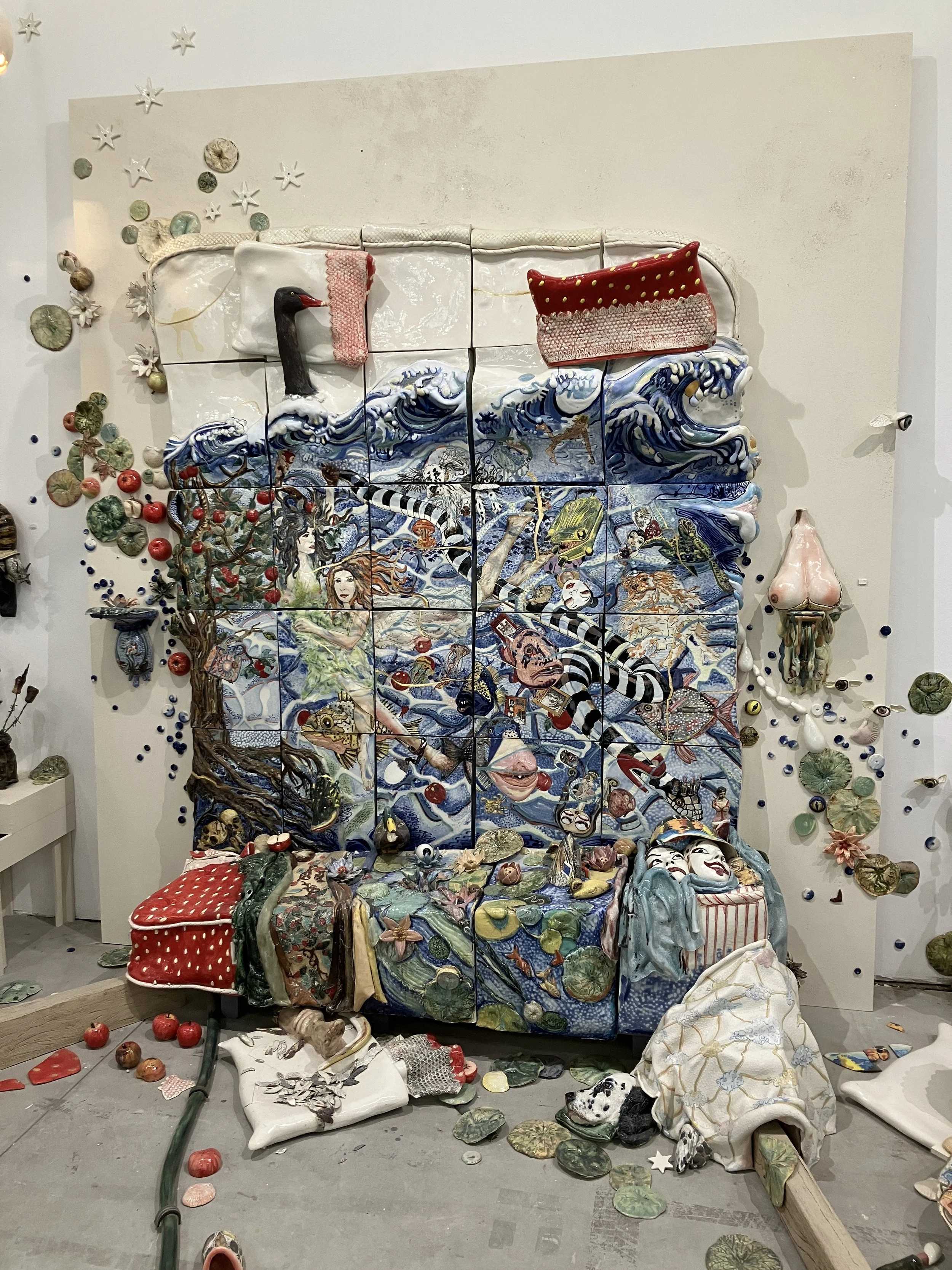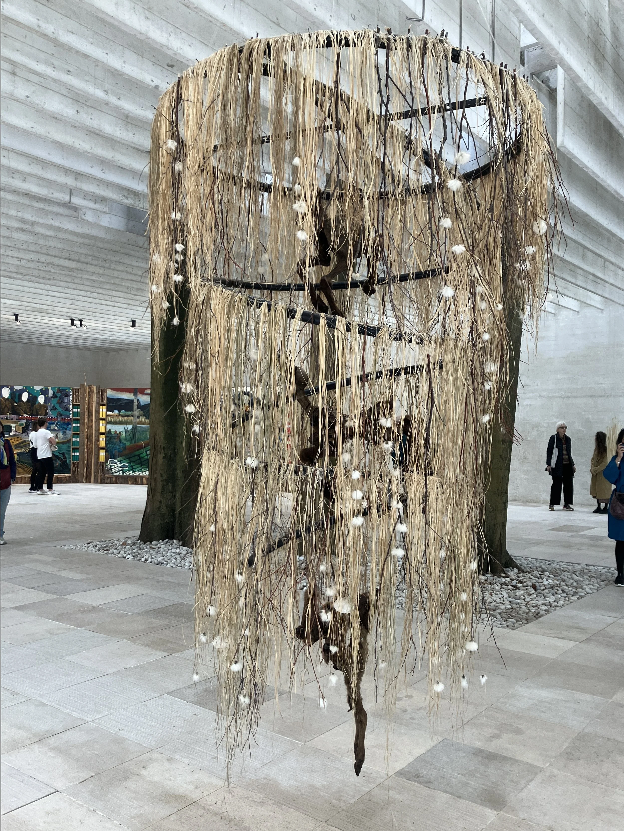 Below a selection of photos (largely also on Instagram) give a visual tour of my wanderings through the different pavilions, exhibitions and collateral events. As a whole, the biennale allowed me to discover a feast of new artists, and I was particularly pleased to see so many female and indigenous artists given prominence. I thought the exhibitions in the Giardini and Arsenale were notably well curated this year, with a real sense of pace, changing media, size and complexity, and the rare ability to leave you invigorated at the end. I was also captivated by a number of national pavilions: Francis Alÿs’s films of children’s games across the world for Belgium; Zineb Sedira’s rich film and stage sets for France; Yuki Kihara for New Zealand unpicking Samoan ideas of Fa‘afafine (third gender); and Małgorzata Mirga-Tas’s monumental tapestries of Roma history and culture for Poland.