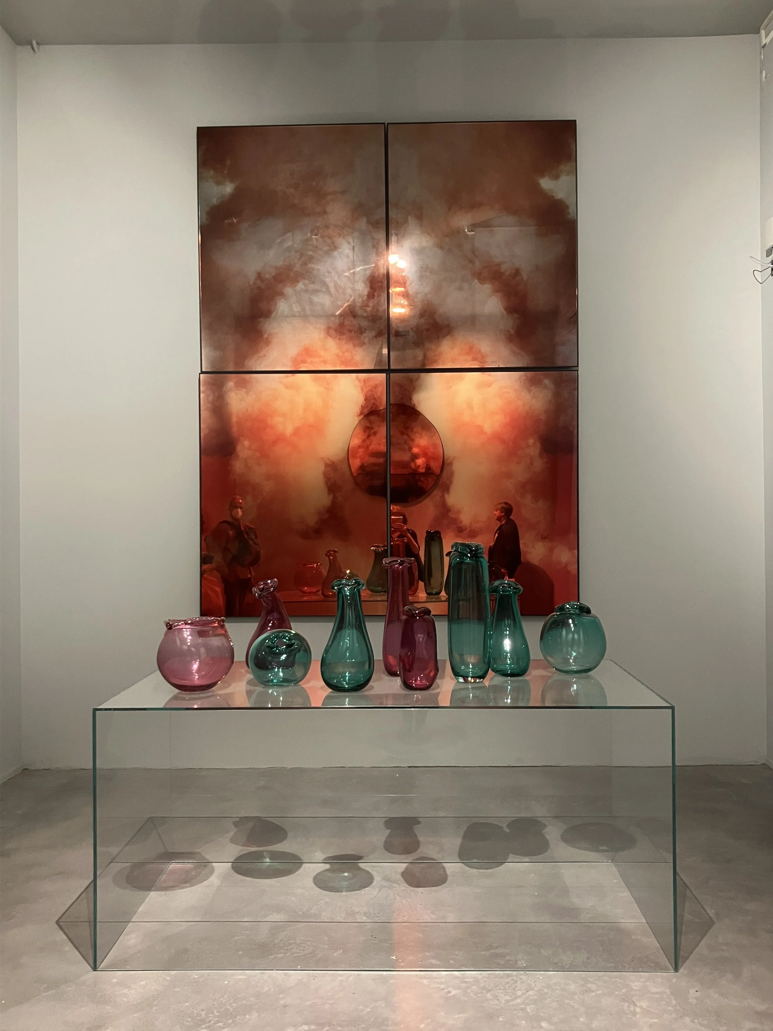 Two national pavilions especially gave me real pause. Lara Fluxà for Catalanonia in Venice and Gian Maria Tosatti for Italy. Fluxà’s presentation Llim (silt) filled the space with a vast chemical apparatus - both visually compelling and quietly mesmerising - to materialise Venice’s foundations in water and its prowess in working with glass, riffing of the root of the word alchemy in the Arabic word for the black mud of the Nile. Tosatti’s two-part ‘History of Night’ and ‘Destiny of Comets’ created an immersive visual tour through the vast (decaying) Italian industrial complex, before imagining a dystopian release into a different future for its thwarted working class. Both presentations drew heavily on ideas of the aesthetics of science - chemical apparatus, functional glassware, rubber tubing, heavy industry, painted instructions, embossed metal platforms, concrete pillars, blinking lights.